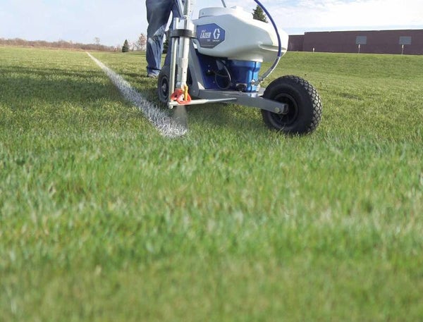 Spezielles Airless-Farbspritzgerät für dieMarkierung von Sportplätzen. Batteriebetriebeneinfach zu bedienen, leicht zu reinigen,sparsam im Farbverbrauch.